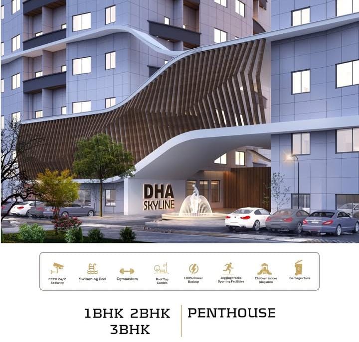 DHA Skyline offers modern living with state-of-the-art facilities, including 24/7 security, power backup, fitness center, and kids play area. Ideally located in DHA Phase 5, Sector G, near the DHA Main Head Office, it ensures convenience, comfort, and luxury living.