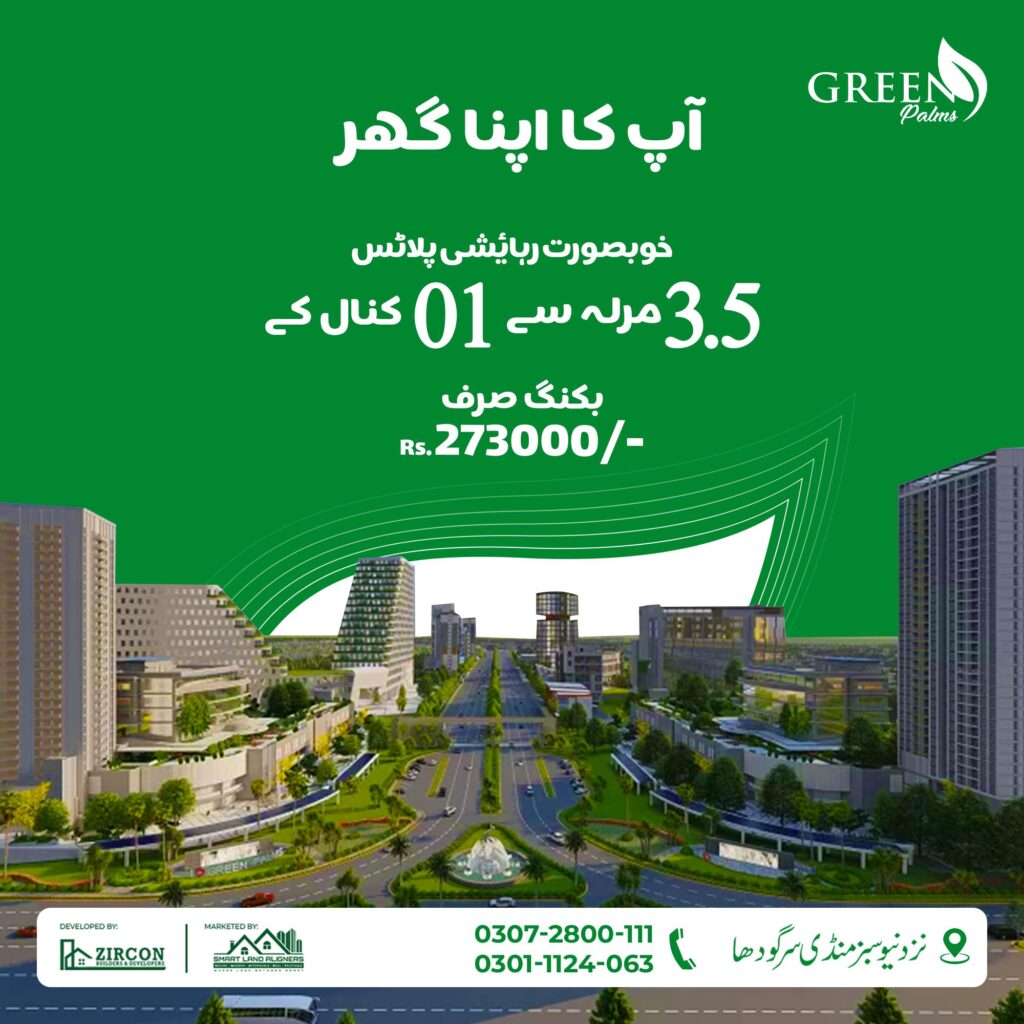 Green Palms Sargodha is a contemporary residential community offering a selection of plots and pre-built houses, designed to provide a modern and comfortable living experience. This well-planned town integrates the benefits of modern infrastructure with the charm of a vibrant community.